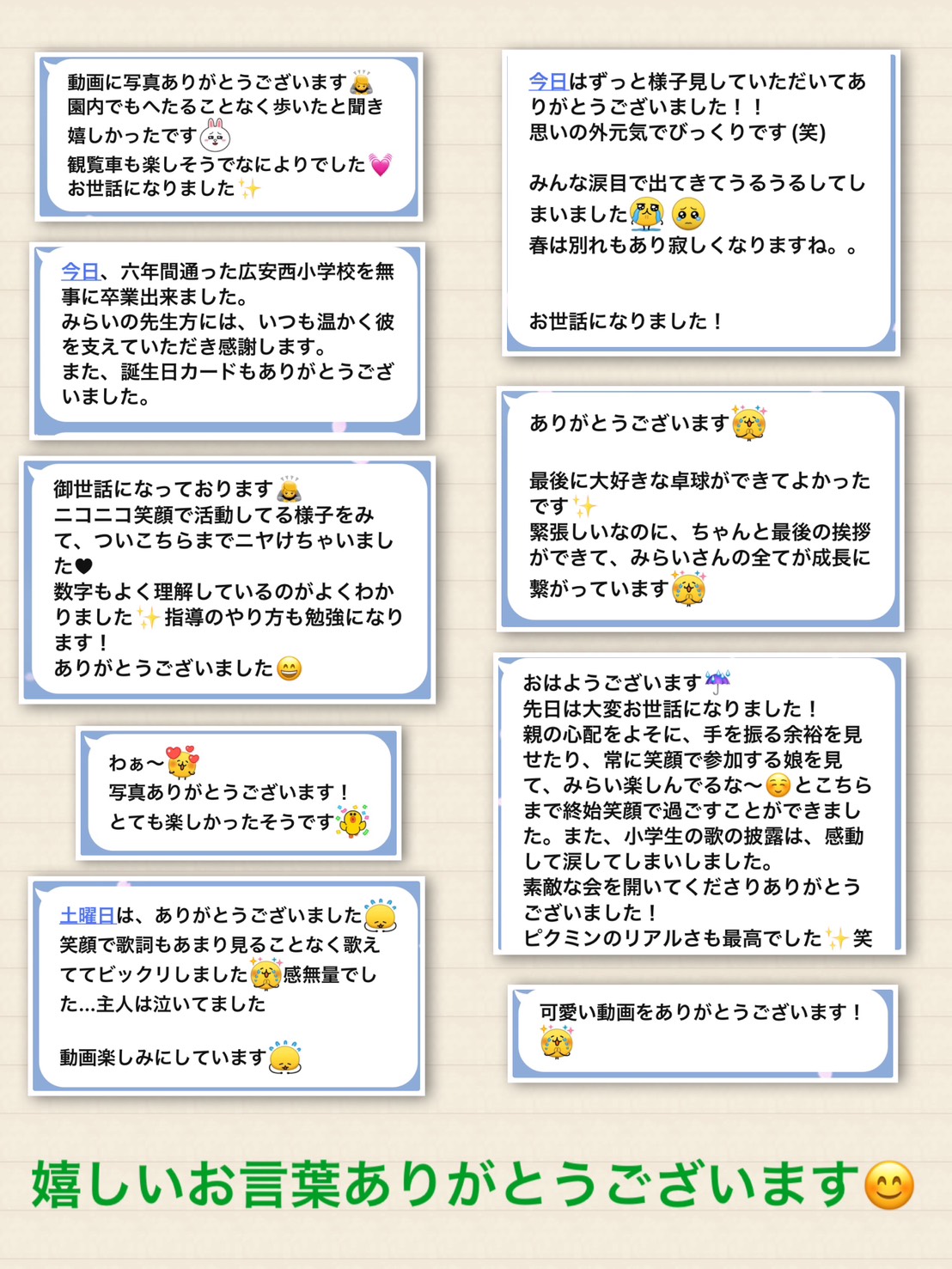 保護者様から嬉しいお言葉をいただいたので