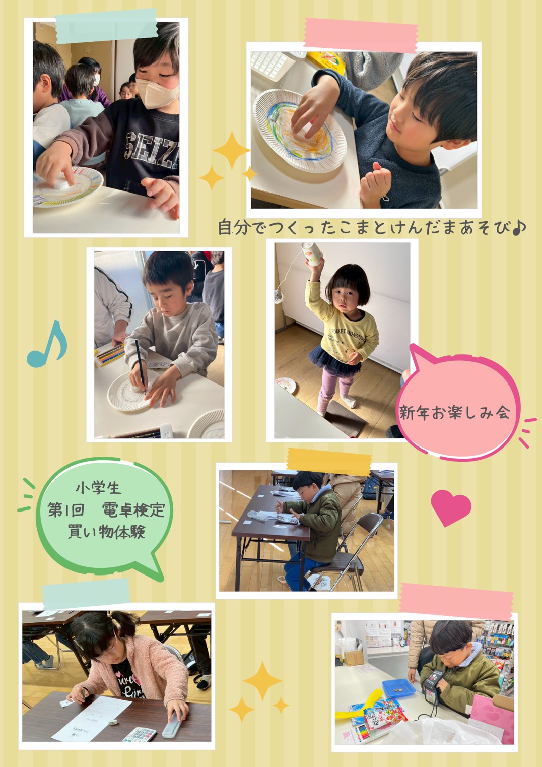 こまやけん玉を製作して遊んだり、福笑いをしたりと、